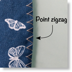 – à la machine à coudre en utilisant un point zigzag. Tu peux utiliser soit ton pied presseur classique, soit le pied de surjet si tu le possèdes.